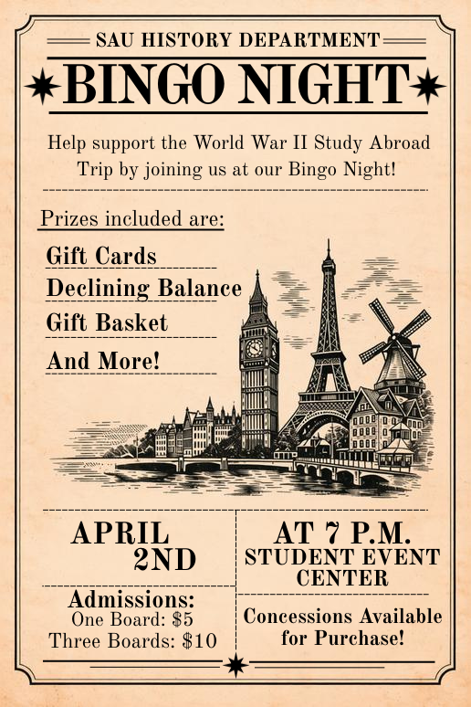 Help support the World War II Study Abroad Trip by joining us at our Bingo Night!