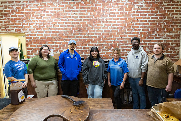 Additional support was provided by Gigi Baucum, retired Director of Aramark Catering Services at SAU for 12 years, and Linda Hicks, spouse of SAU President Dr. Bruno Hicks, who volunteered as cooks in their ongoing efforts to address food insecurity on campus. Dr. Donna Allen, Vice President for Student Affairs, continues to support student service learning, food security initiatives, and community engagement, making service opportunities such as these possible.