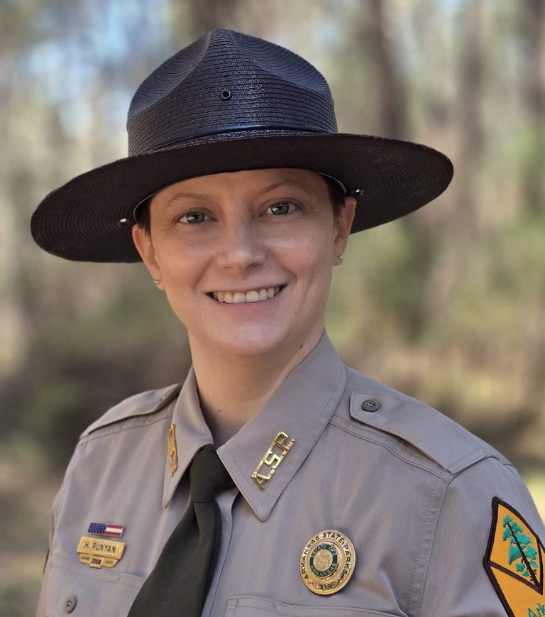 Heather Runyan is the park interpreter at Logoly State Park. She served two terms as an AmeriCorps member at Garvan Woodland Gardens before joining Arkansas State Parks in 2006. In addition to Logoly State Park, she has also worked as a park interpreter at Crowley’s Ridge State Park and Village Creek State Park. For her, the best part of the job is getting to share a passion for Arkansas’ natural resources with guests and watch as they discover something new.